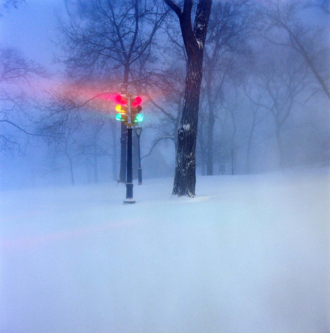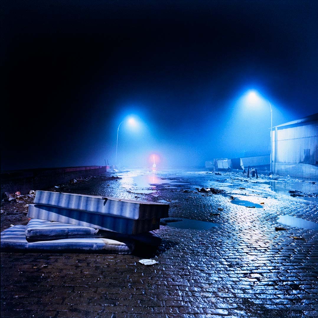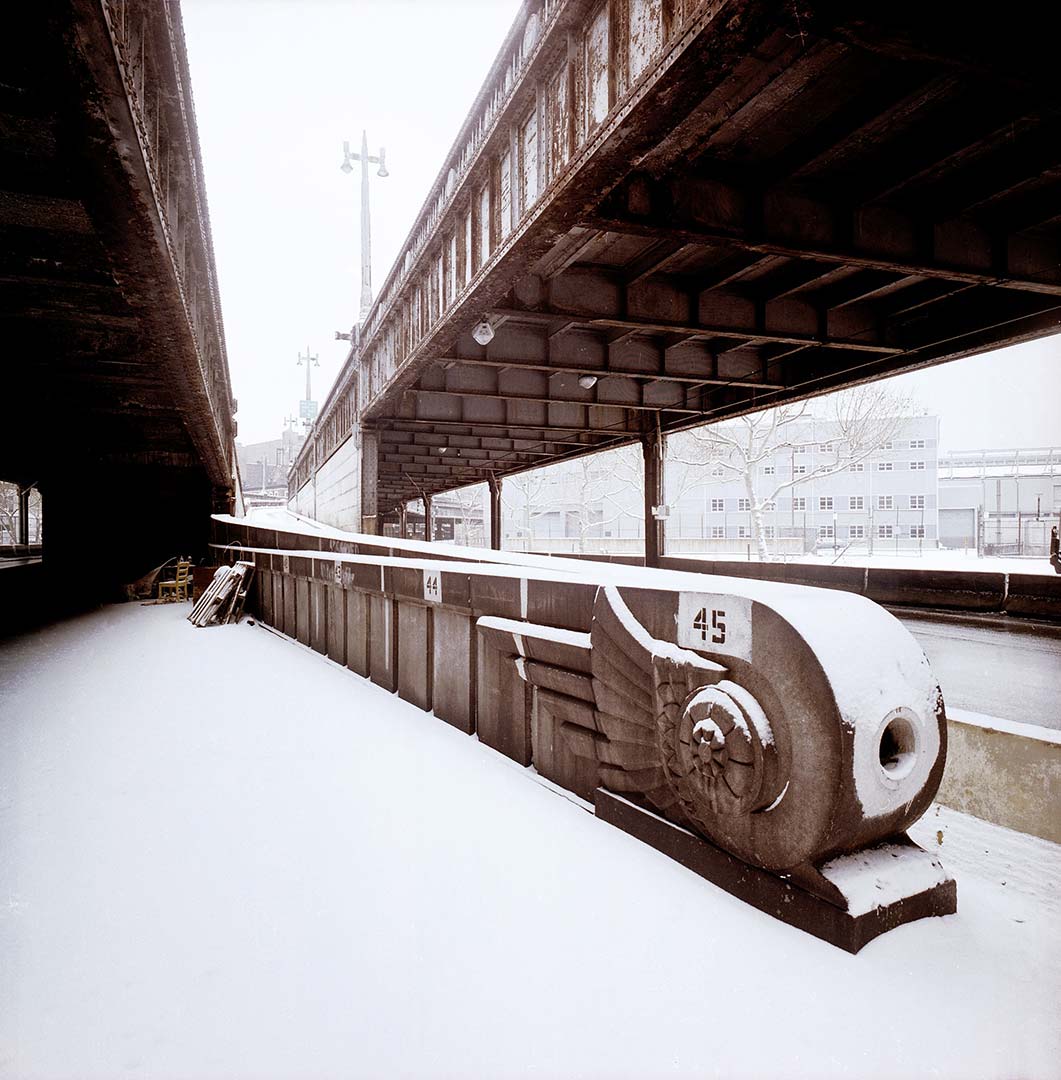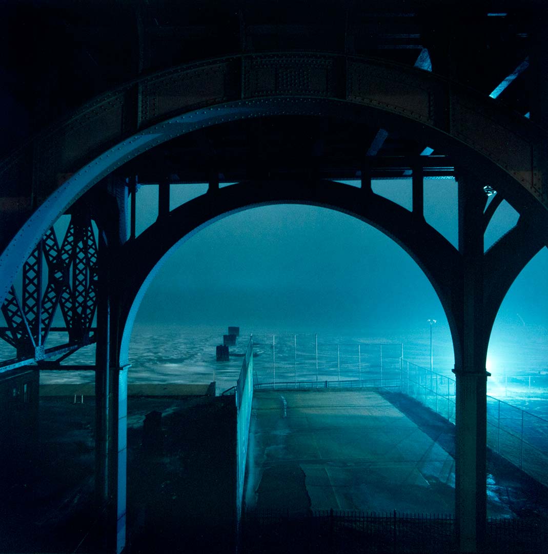 It is to these areas that I have long been drawn, lingering there to meditate on a quality of light, space and weather. In the decay and desertion of these run-down places, there is much for me to explore, and I find the atmosphere to be rich in mystery, reminiscent of a lost city. Early on, around 1976, I would head for the west side of lower Manhattan to explore the abandoned Miller Highway. On the vast expanses of that deteriorating roadway– better known as the West Side Highway– I found unblocked sunlight, an open horizon, and all varieties of weather. It is this spirit that I have branched out in my adventures, taking my camera to many other places in the New York area. The resulting images describe a transitory experience of atmosphere, where daylight, weather and artificial light combine in ethereal, otherworldly ways.